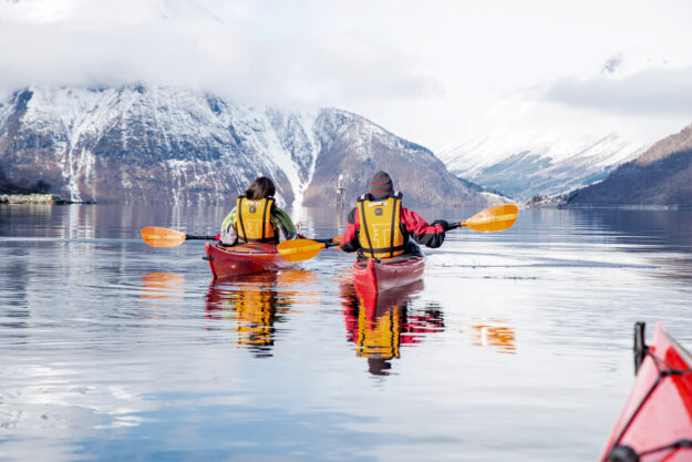 Based at the exceptional Storfjord Hotel, this festive itinerary blends peaceful forest surroundings with dramatic fjord scenery and curated winter experiences. Guests arrive just before Christmas and spend five nights immersed in Norway’s serene landscapes, enjoying snow laden woodland walks, guided snowshoeing in the Sunnmøre Alps, a spectacular fjord cruise through Hjørundfjord and tranquil kayaking on still winter waters.