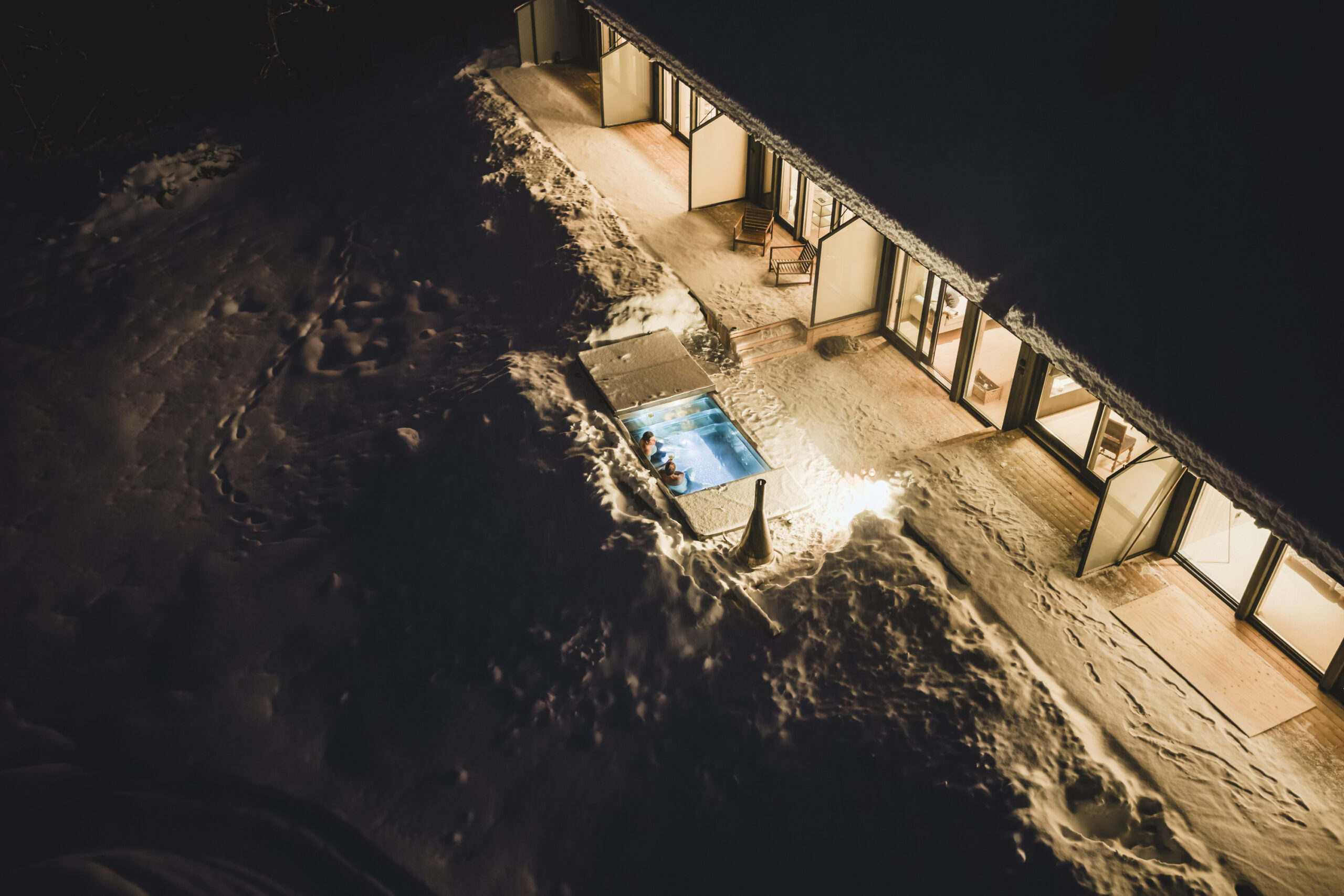 Days are filled with unforgettable experiences including dog sledding, snowmobiling, ice fishing and visits to the dramatic Storforsen rapids, while evenings bring the chance to witness the Northern Lights from your terrace or hot tub. With a private chef, dedicated host and tailored activities throughout, every moment is effortless and personal.