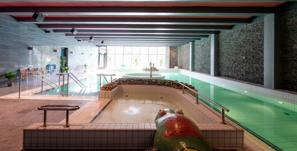 Saaga is located on the tree line of Ylläsjärvi, where the scenery is magnificent, as far as the eye can see. The view changes according to the time of day and year, making every moment special in our hotel. The Gondola-lift, which runs right next to our hotel up to the fell, tempts you to spend a day on the slopes. Versatile skiing tracks and paths invite you to dive into the shelter of the forest, after breathing in the fresh air on the fell. And what better way to end your day than a trip to the magnificent Spa? Beautiful natural stone and lighting create a wonderful atmosphere for the pool area. You can enjoy the embrace of warm bubbles in the hot tub of a natural stone cave, or in a more traditional hot tub. Younger ones will have a fun time with the crocodile in the wading pool. Hot steam baths can be enjoyed either in a traditional Finnish sauna, or in a relaxing steam sauna. There is also a private sauna available for reservations.