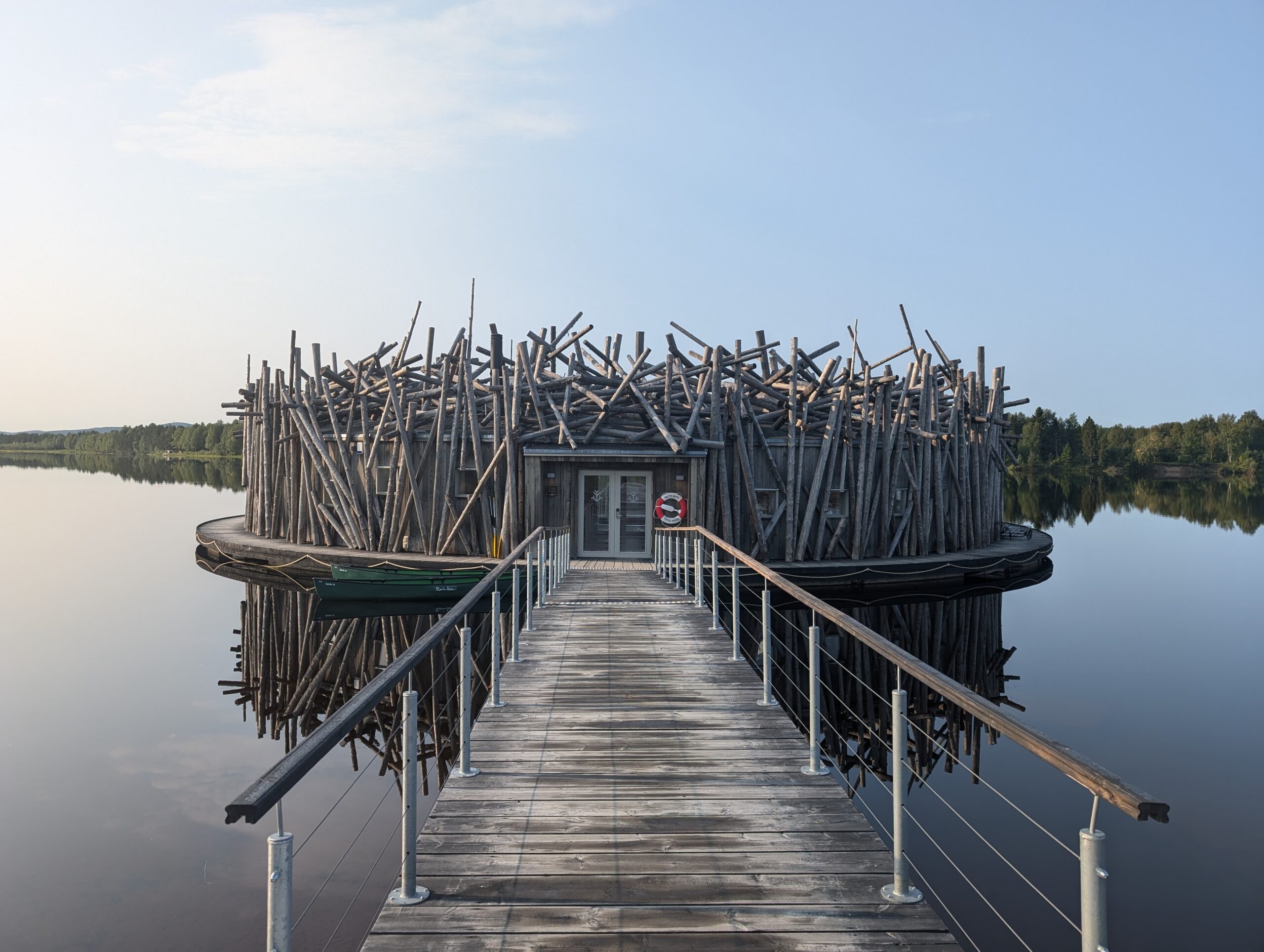 The Arctic Bath is a floating hotel and spa, with unique accommodation from six floating log cabins with their own pontoon from the mainland, stretching out into the lake, for tranquillity, with the added bonus of a luxury spa close by, with a sauna and a plunge pool into the cooling waters of the lake. There are also six other luxury, three story cabins on the mainland, with floor to ceiling glass elevations, so you can view the Northern Lights from the comfort of your living room, or bedroom, with uninterrupted views over the lake.