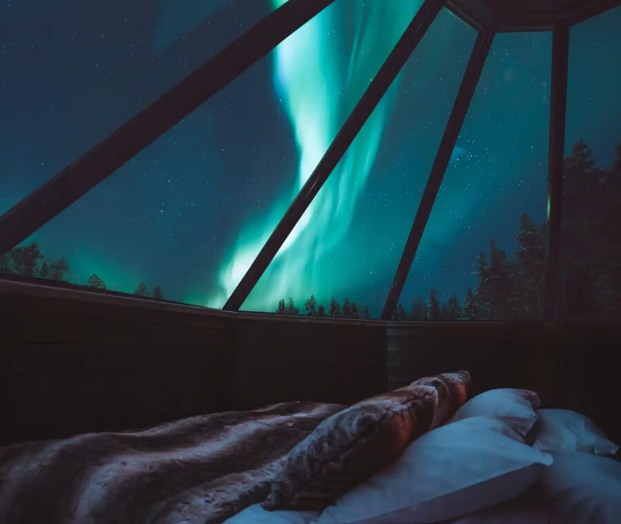 The glass roofed Aurora Cabins in Finnish Lapland provide guests with an unparalleled opportunity to witness the awe-inspiring Northern Lights from the comfort of their own bed, with Northern Lights alerts to make sure you don’t miss this natural light display.